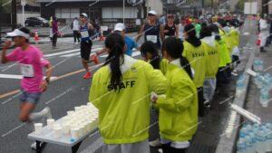 ランナーさんへの呼びかけや沿道での応援等、雨にも負けない元気な殿中生の姿は、多くのランナーから好感を持たれ、RUNNET(大会参加ランナー感想)にも中学生スタッフへの感謝、感激の言葉がたくさん寄せられていました。