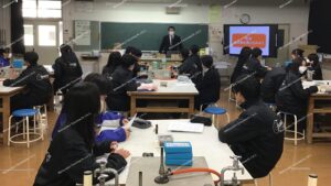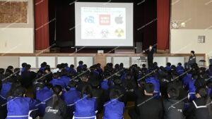 1月27日(火)、大阪大学環境エネルギー工学専攻の玉置真悟先生をお招きし、放射線について学びました。はじめに体育館にて学年全体に講義をしていただき、その後クラスごとに実習を行いました。子どもたちにとってとても貴重な経験で、興味を惹かれる時間となりました。