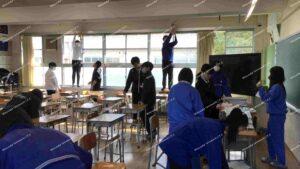 2月26日(木)、午後から3年生による奉仕作業が行われ、3年間お世話になった感謝を込めて学校の隅々まで清掃してくれました。教室や廊下に加えて、卒業式で使う体育館の椅子も一脚ずつていねいに整え、校舎全体がすっきりと気持ちよい雰囲気に包まれました。3年生の軽やかな動きと笑顔が、学校に明るい風を運んでくれました。