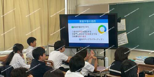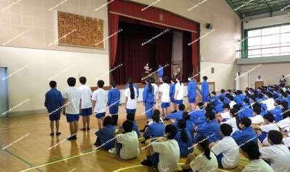 3限目に学年集会がありました。級長会の司会で、夏休みの過ごし方や宿題についてなどの話を聞きました。中学校の宿題の量に驚いた人もいたようです。有意義に、計画的に取り組みましょう。夏休み明けにはすぐ期末テストがあります。夏休みの宿題を活用して学習を進めましょう。最後に、級長会から各クラスや学年の良いところと改善点についての話がありました。この集会までに各クラスでこれまでをふりかえった内容をまとめ、各級長、副級長が話をしました。明るく楽しいところや積極的に困っている人を助ける温かさがあるいっぽう、騒がしくなってしまったりメリハリをつけられない場面があったりすることが課題として挙げられていました。みんなでふりかえったことを活かして、学年としてさらに成長していきましょう!